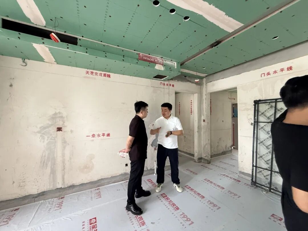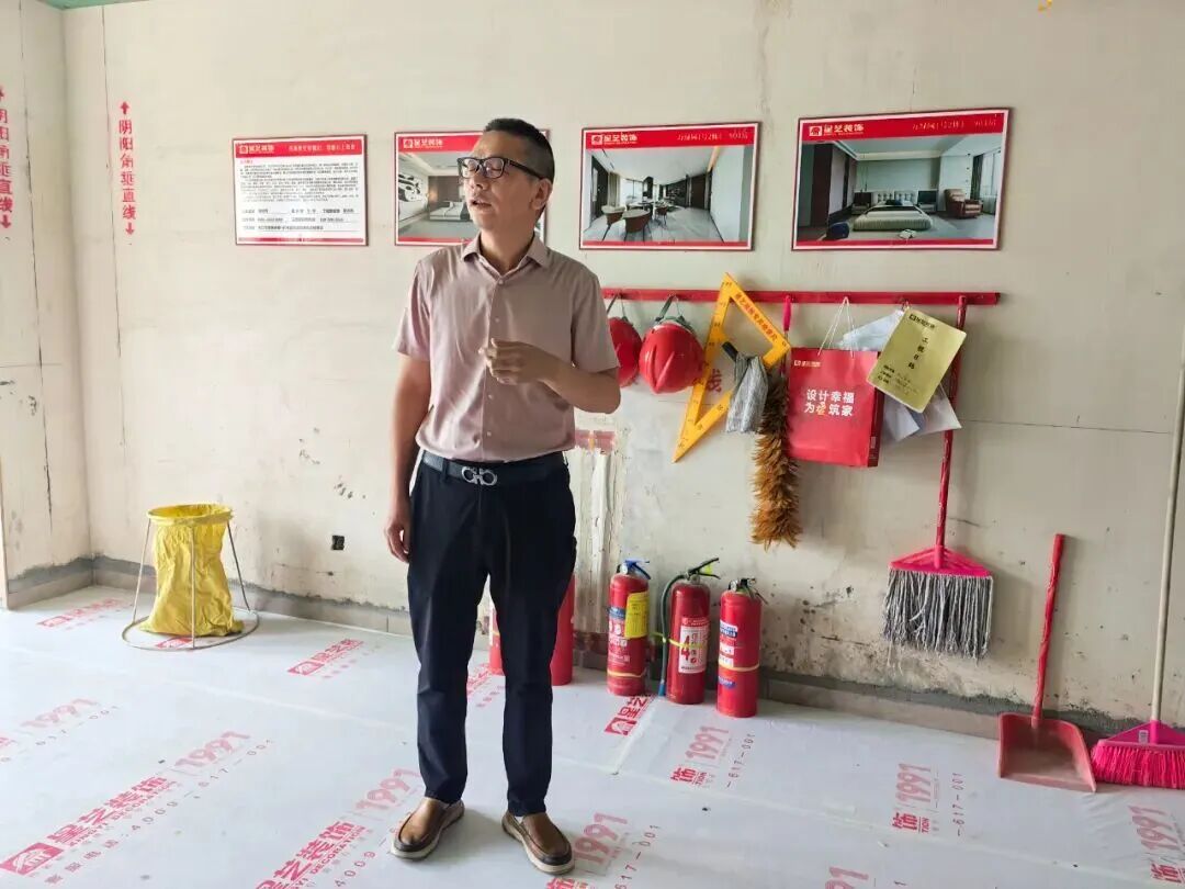 巡檢當(dāng)天,在海南星藝裝飾承接的萬(wàn)綠園一號(hào)2棟901(泥木階段)施工項(xiàng)目現(xiàn)場(chǎng),??谛撬囇b飾總經(jīng)理聶勇為大家詳細(xì)講解“墻面涂灰”“墻角垂直度檢測(cè)”等關(guān)鍵工藝標(biāo)準(zhǔn)。在他的帶領(lǐng)下,眾人穿梭于各個(gè)施工區(qū)域,親眼見證了星藝裝飾規(guī)范的施工流程和精湛的工藝。